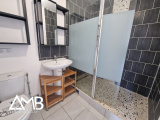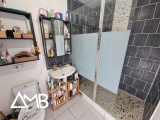 Au RDC, elle se compose de : entrée sur salon / salle à manger, cuisine ouverte aménagée et semi-équipée, cellier, une chambre et une salle d'eau avec wc.