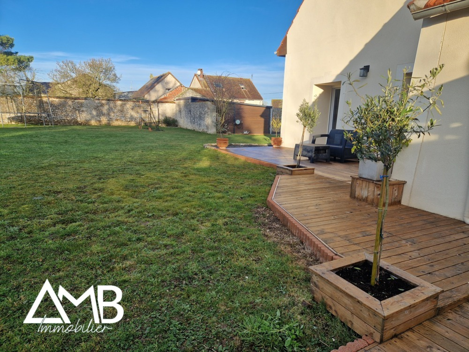 Vaste et agréable terrain clos avec portail motorisé ainsi qu'une terrasse exposée SUD.